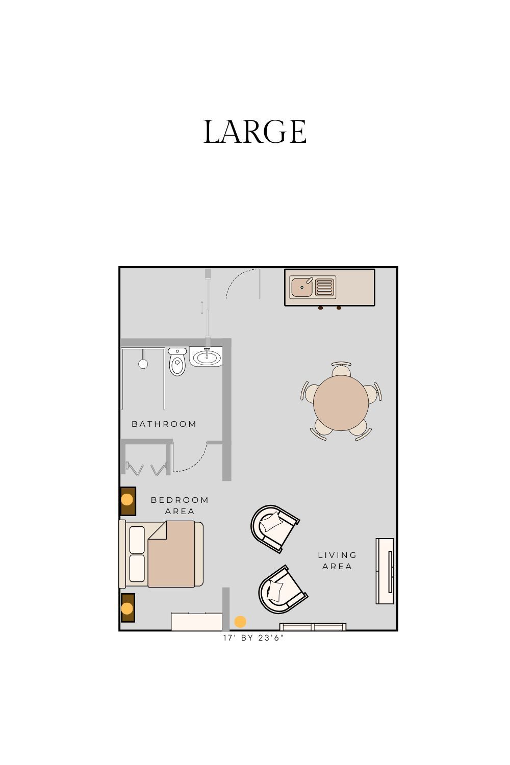 Some suites include a kitchenette with a bar-sized refrigerator.